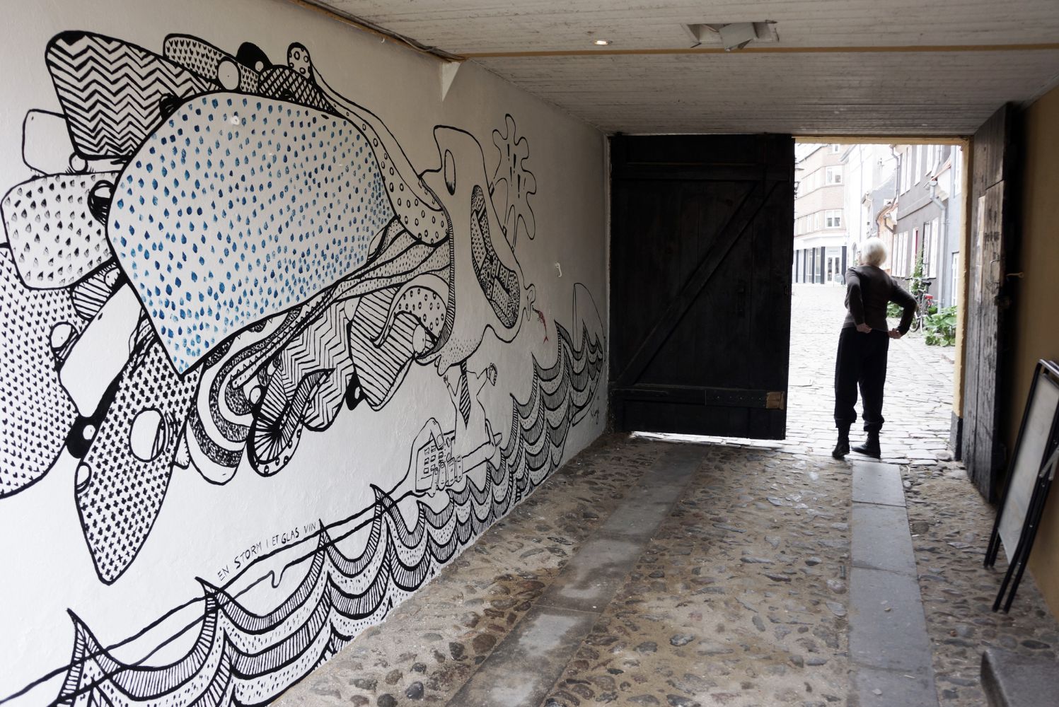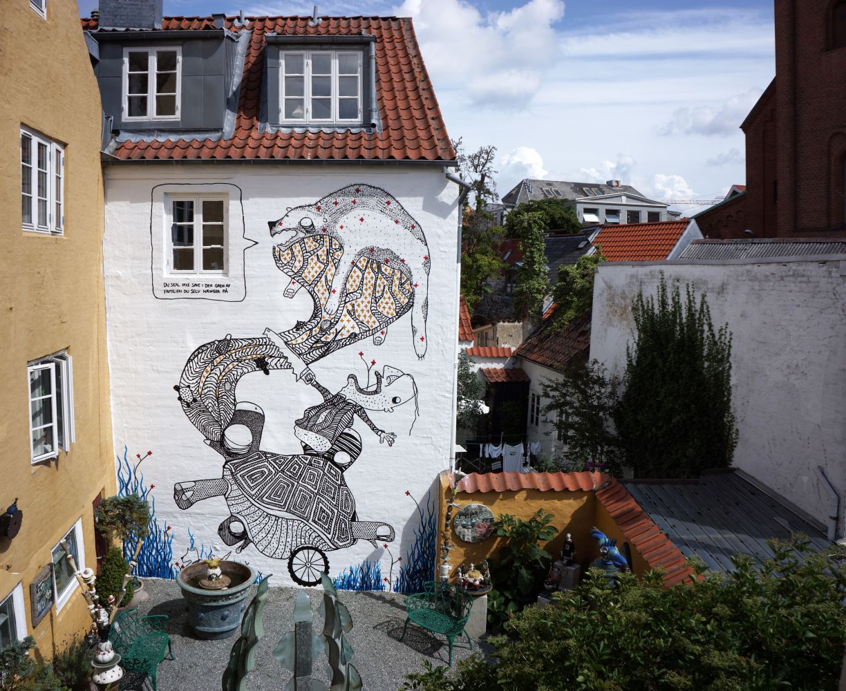 Det startede med et maleri i porten ind til Lange Kunsthåndværk (på godt 14 m2), som et par måneder senere affødte et stort gavlmaleri (på 32 m2) samme sted.