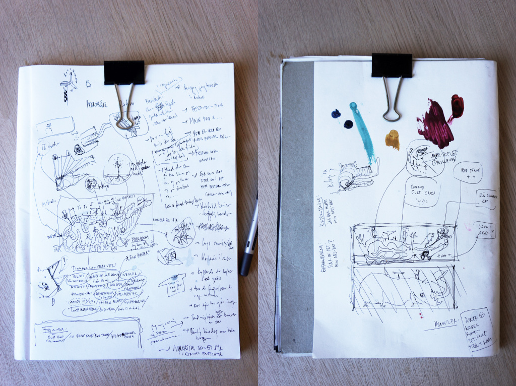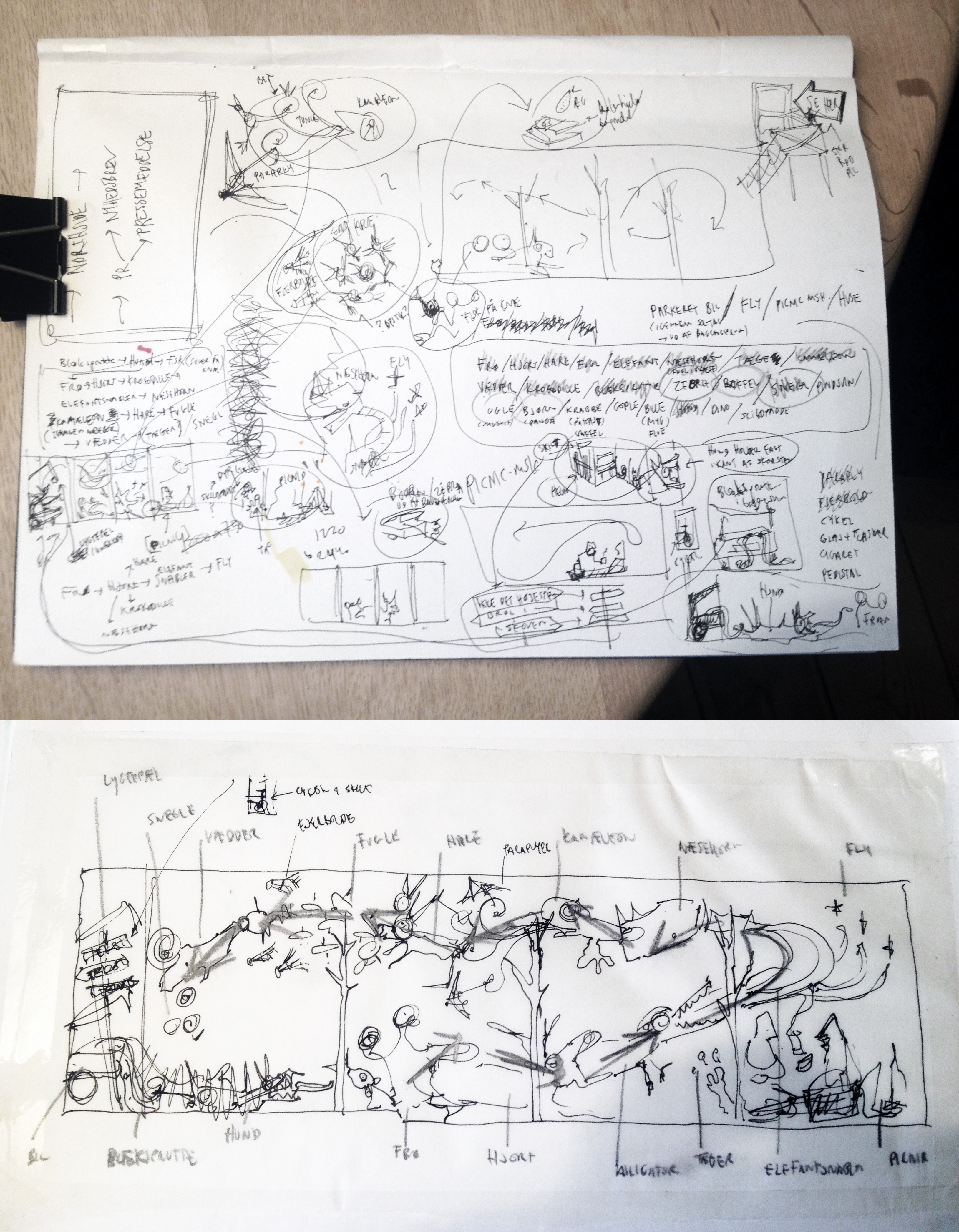 Her kan du se skitserne til to store vægmaleri-projekter jeg arbejder på at færdiggøre i løbet af juni måned.