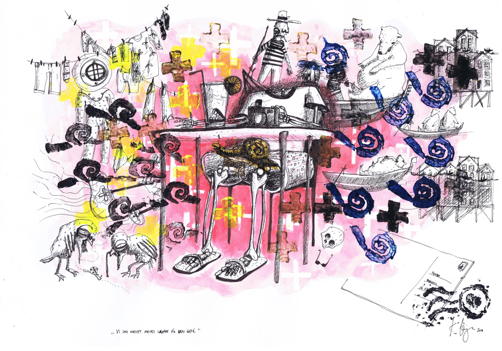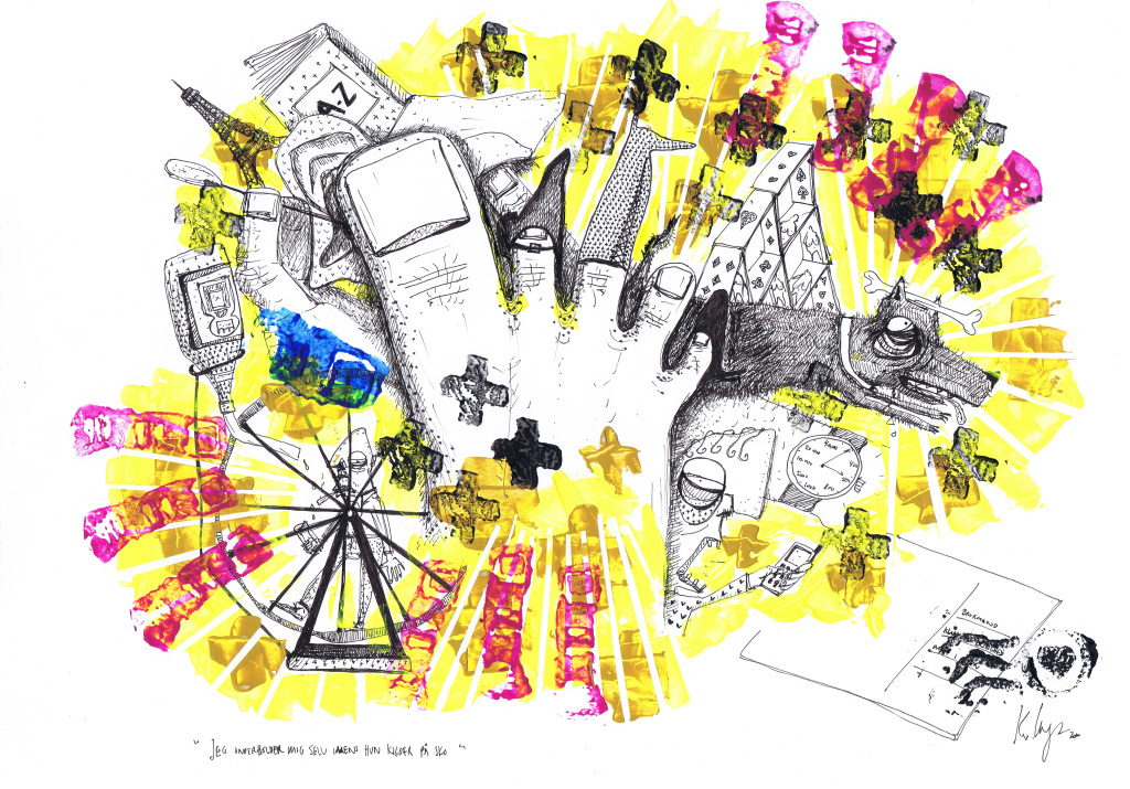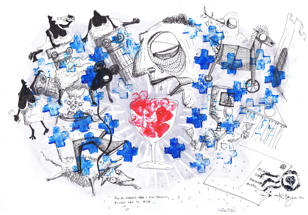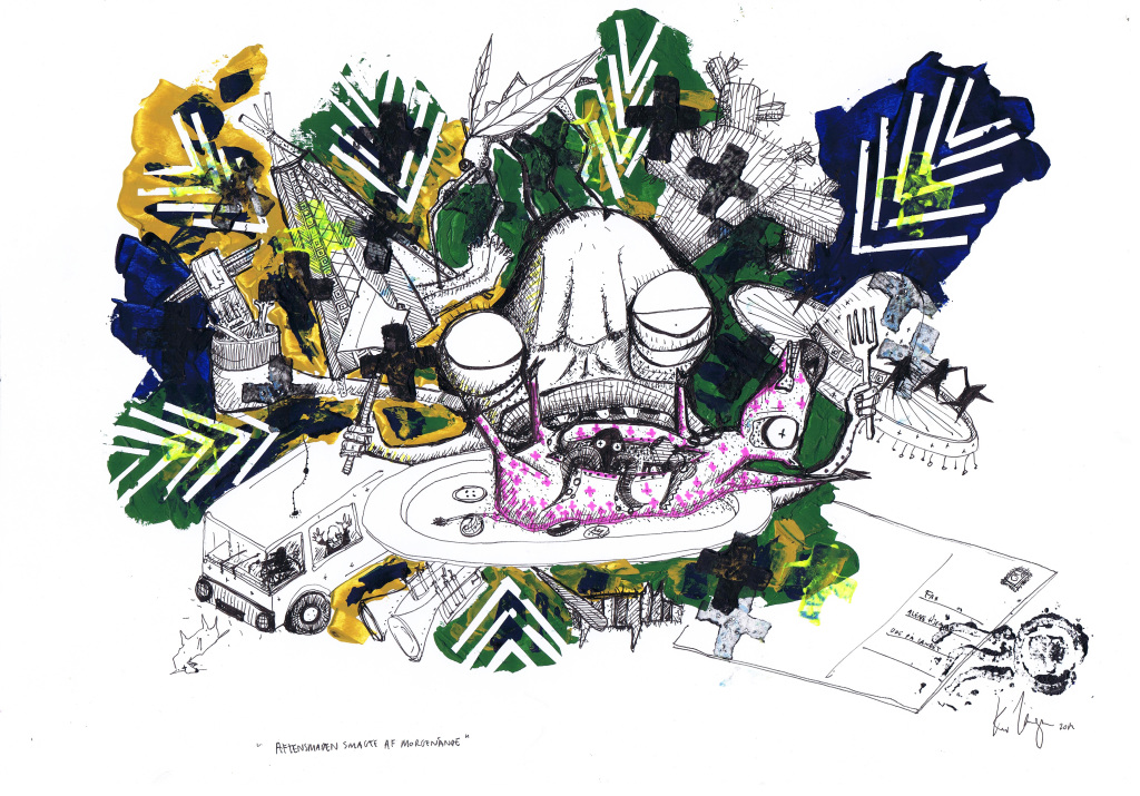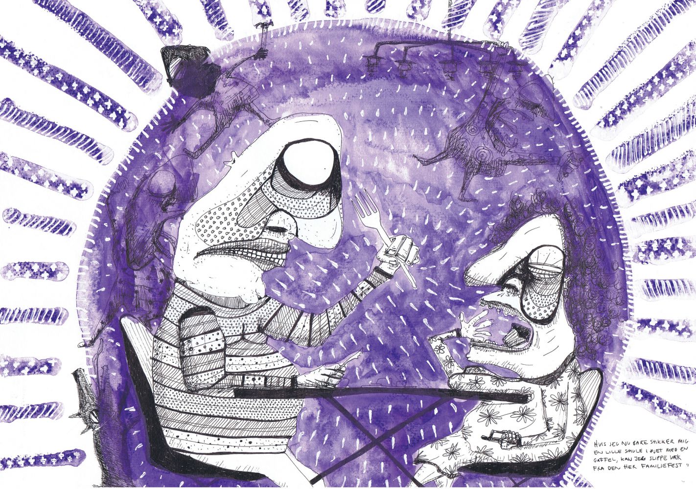 Hvis jeg nu bare stikker mig en lille smule i øjet med en gaffel kan jeg slippe væk fra den her familiefest (42 x 30cm)