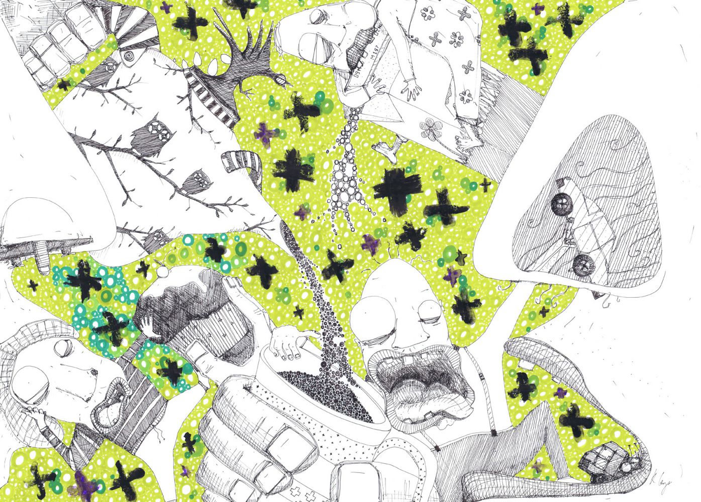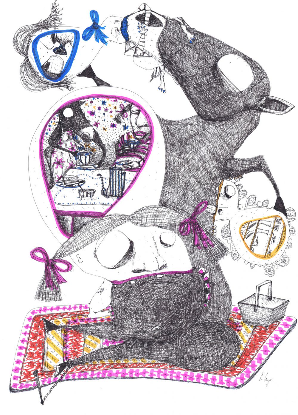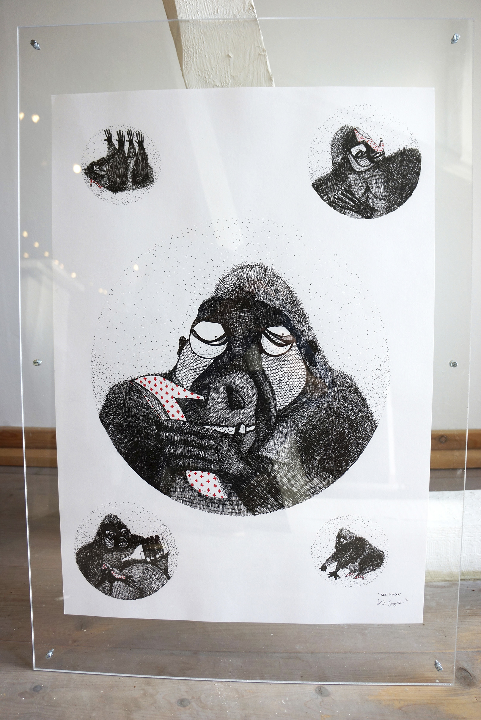 Hvis jeg nu bare stikker mig en lille smule i øjet med en gaffel kan jeg slippe væk fra den her familiefest (42 x 30cm)