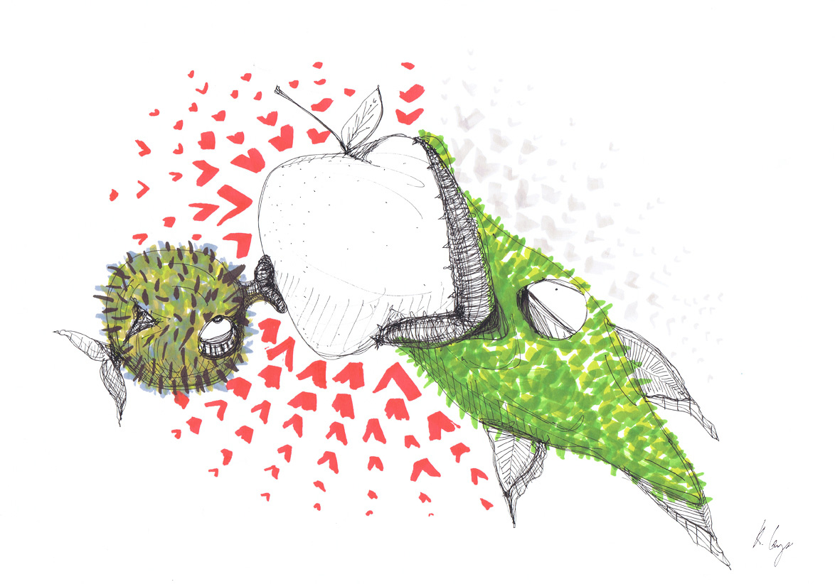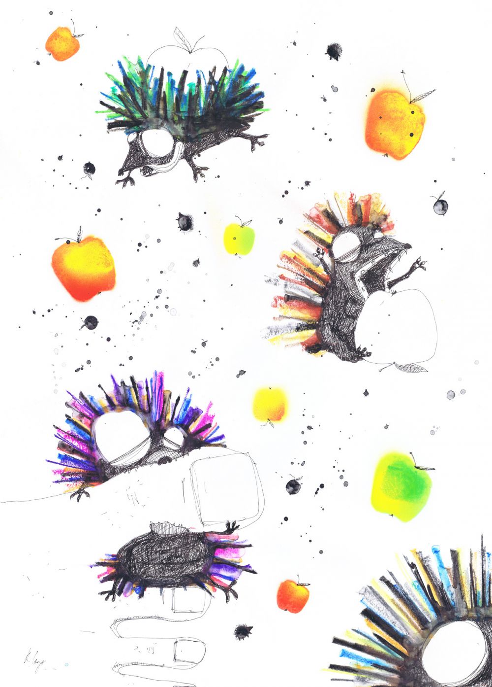 Pindsvin og æbler (64 x 45 cm)