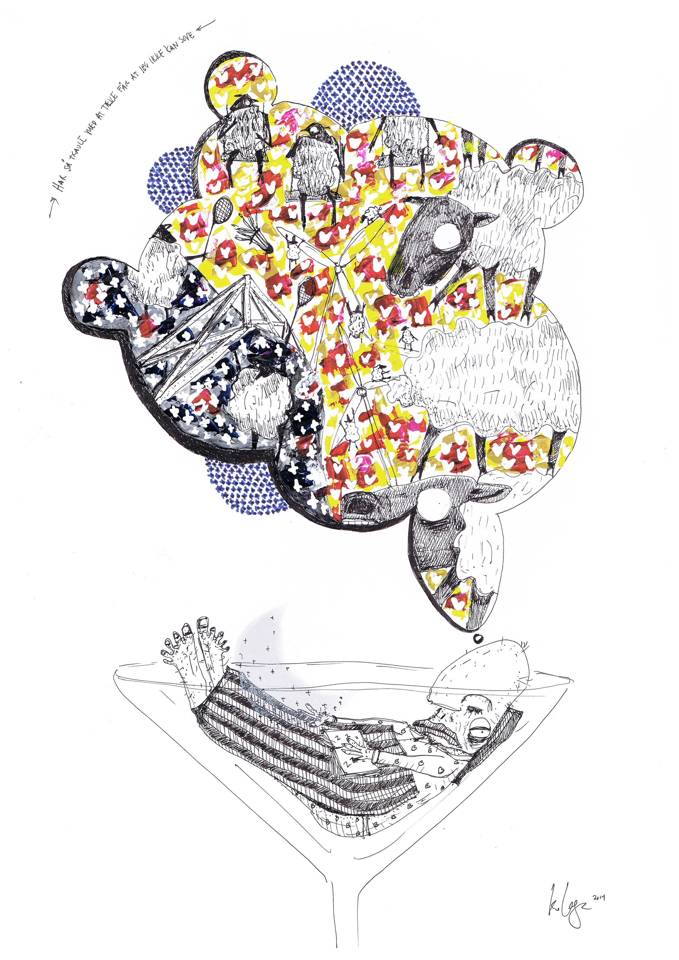 Har så travlt med at tælle får at jeg ikke kan sove (42 x 30cm)