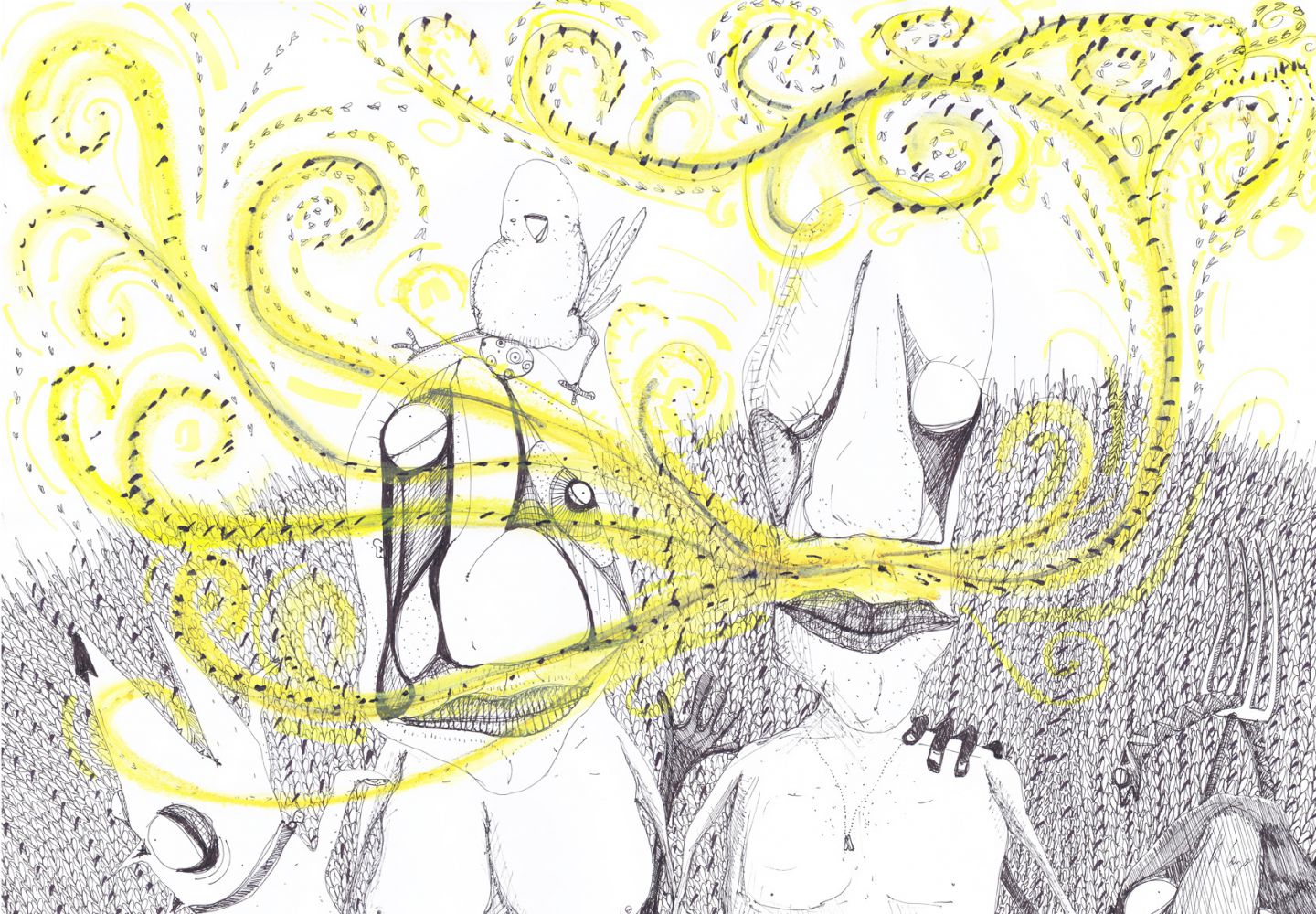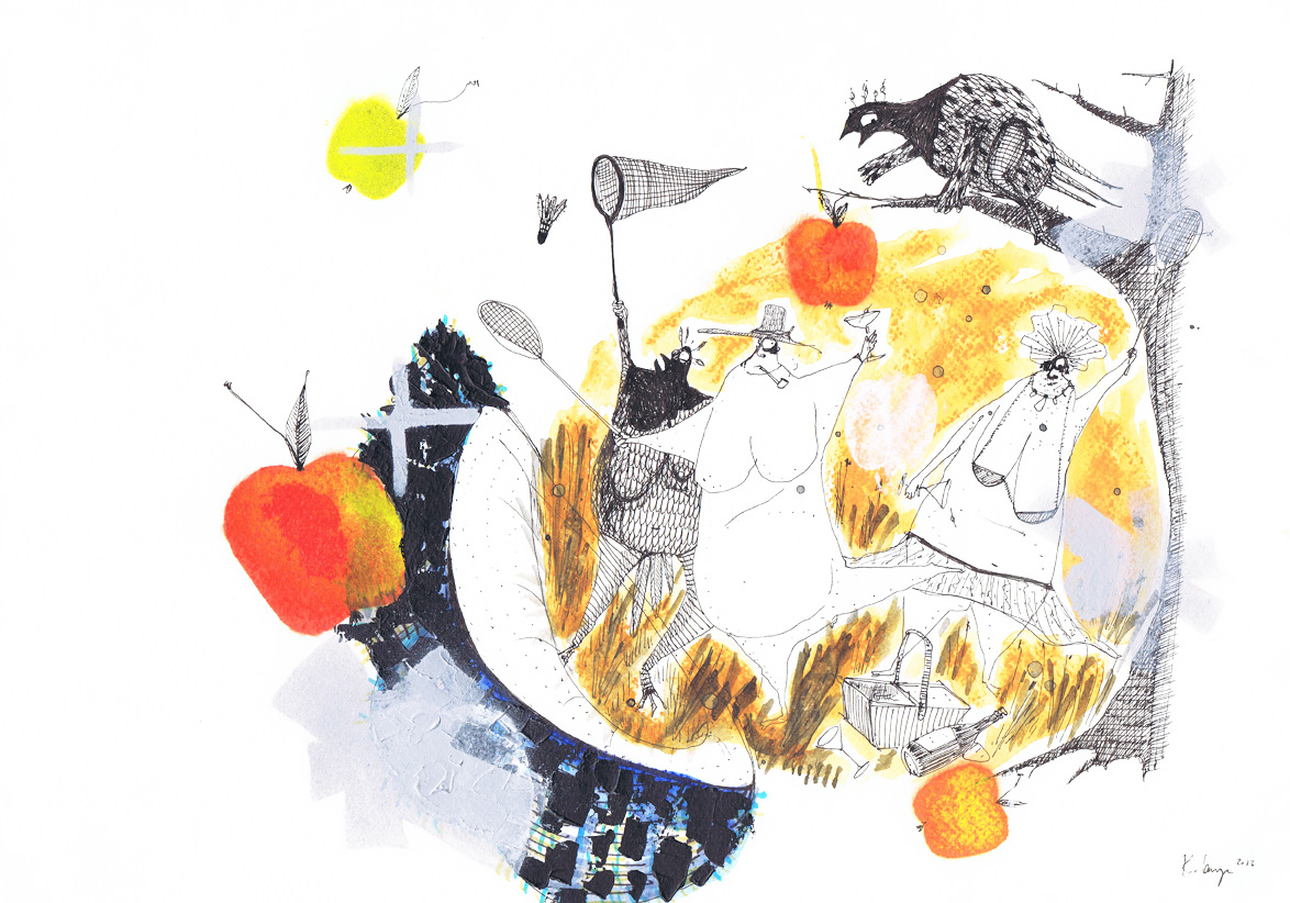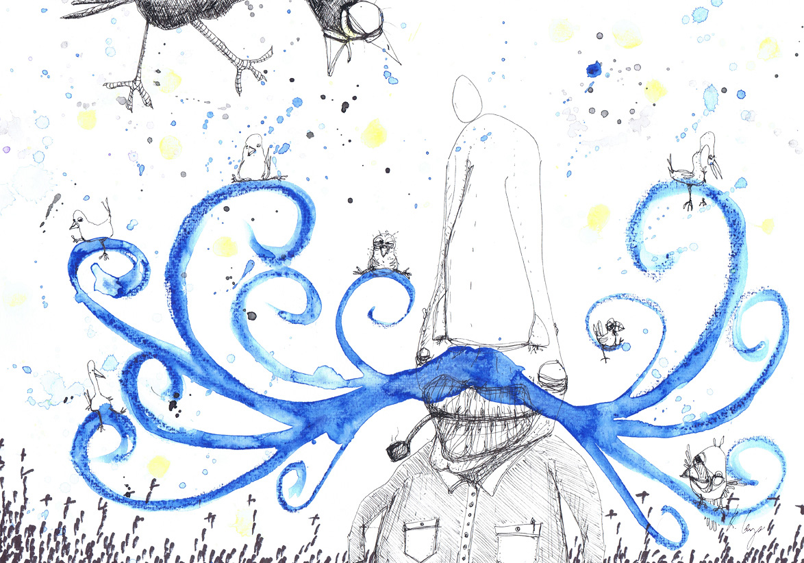 The birds love my moustache (42 x 30 cm)