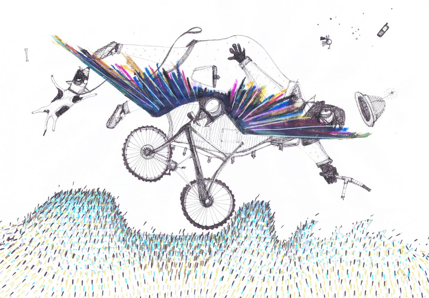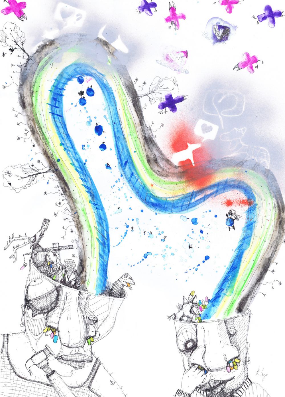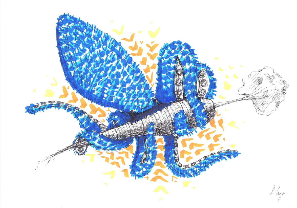 The birds love my moustache (42 x 30 cm)