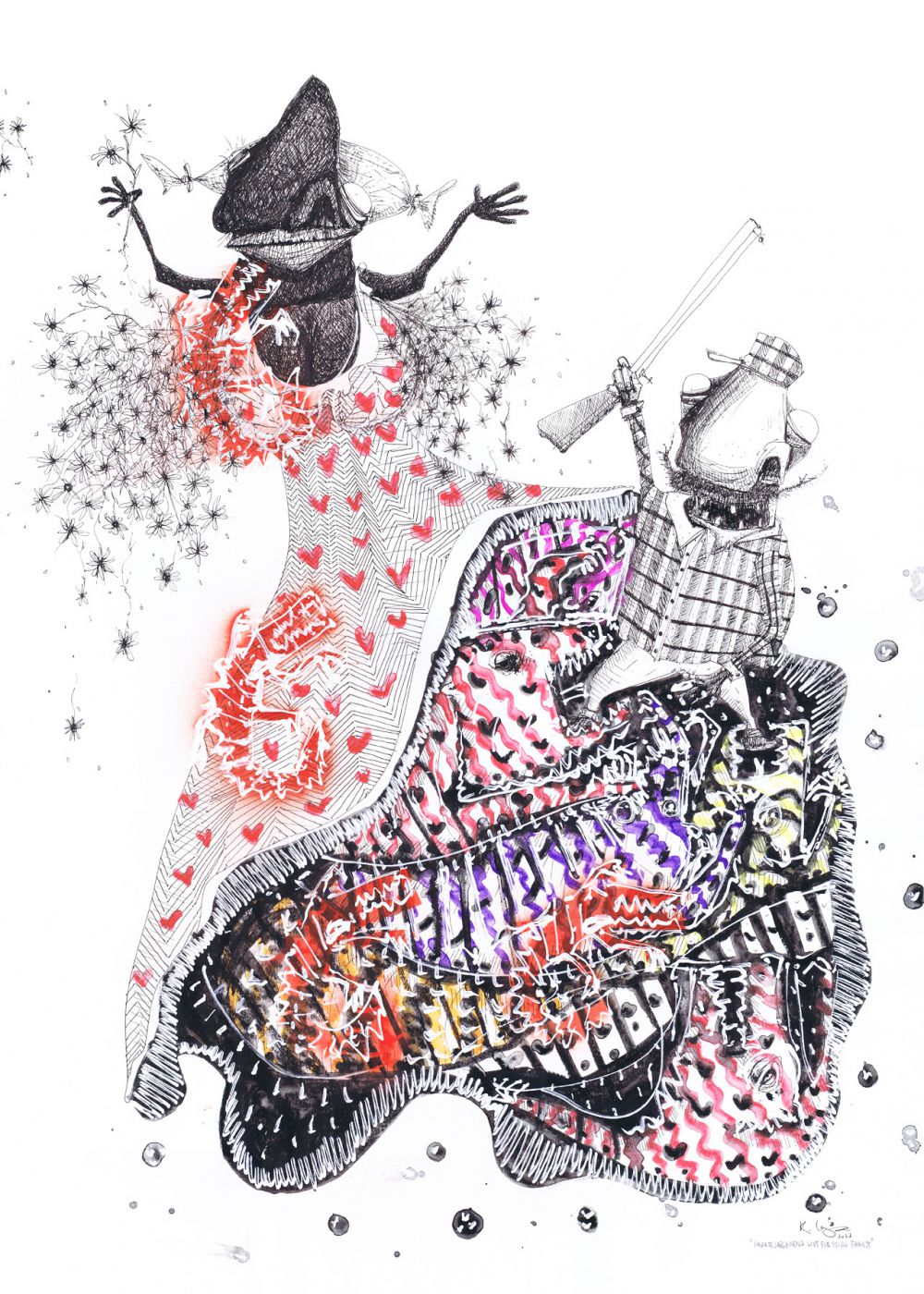 Skørtejægerens lidt for store fangst (59 x 41 cm)