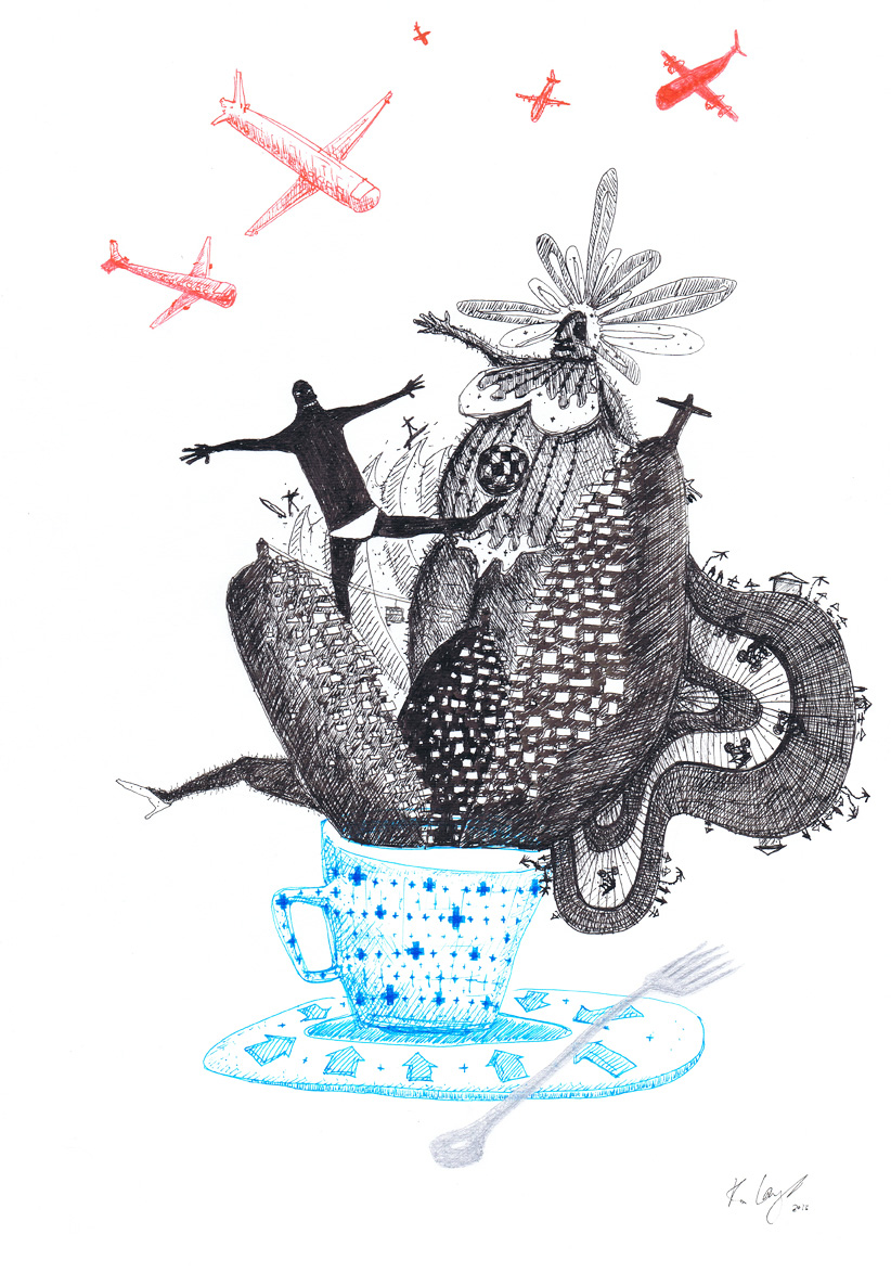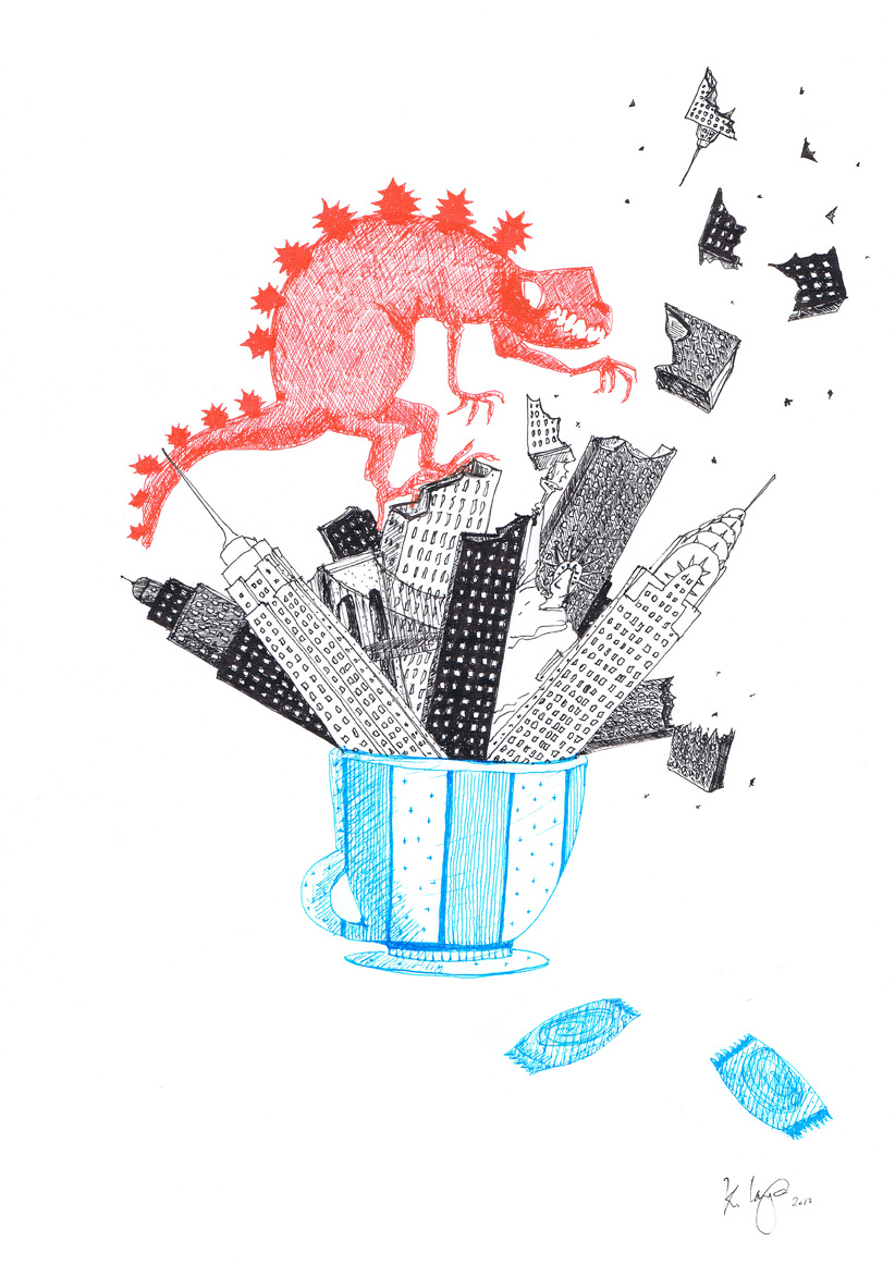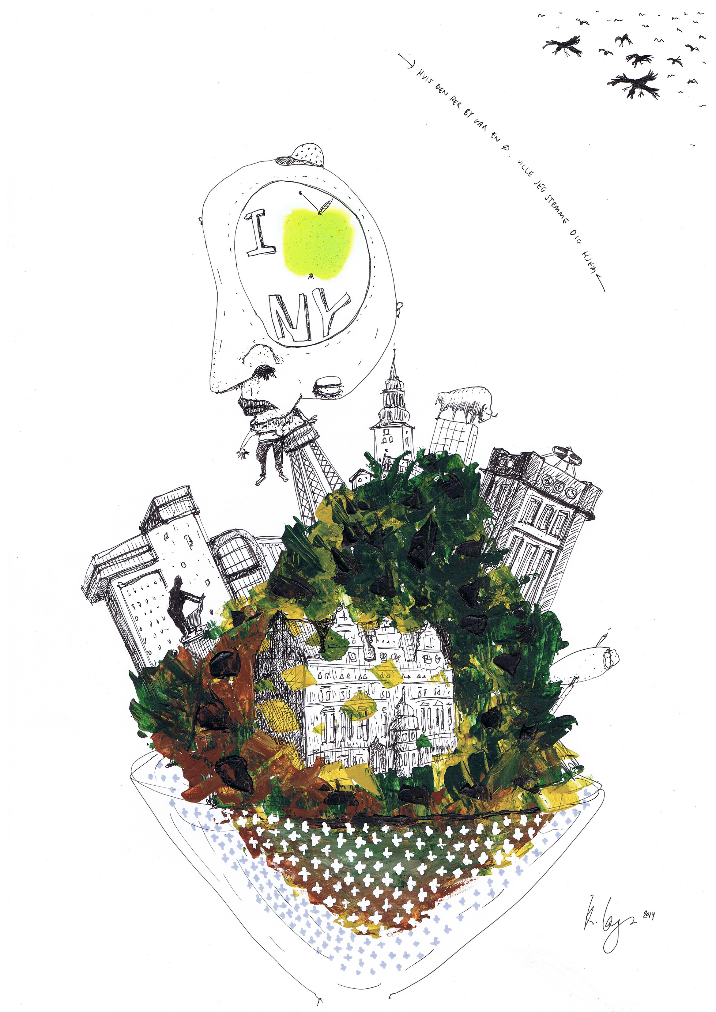 Hvis den her by var en ø, ville jeg stemme dig hjem (42 x 30cm)