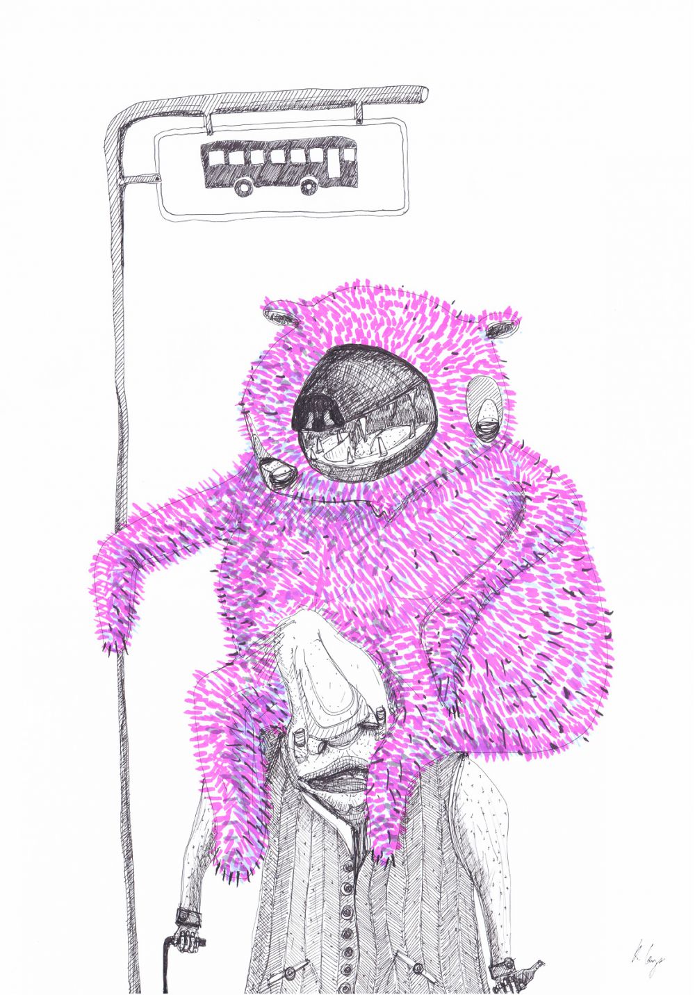 Venter på bussen med en ordentlig bjørn på (59 x 41 cm)