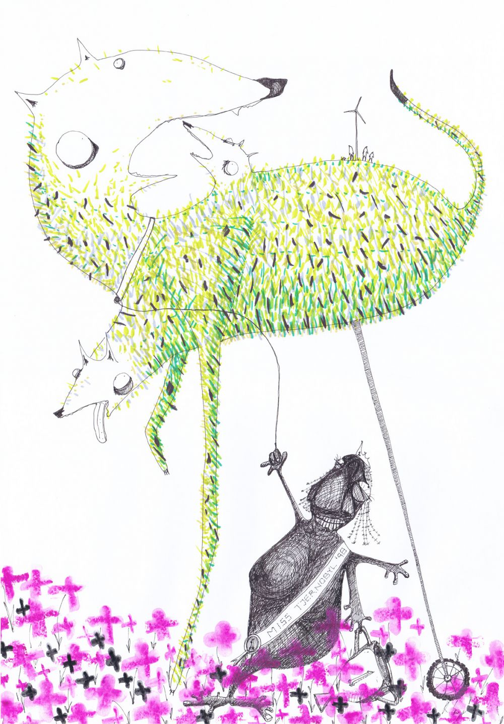 Miss Tjernobyl går tur med hunden (59 x 41 cm)