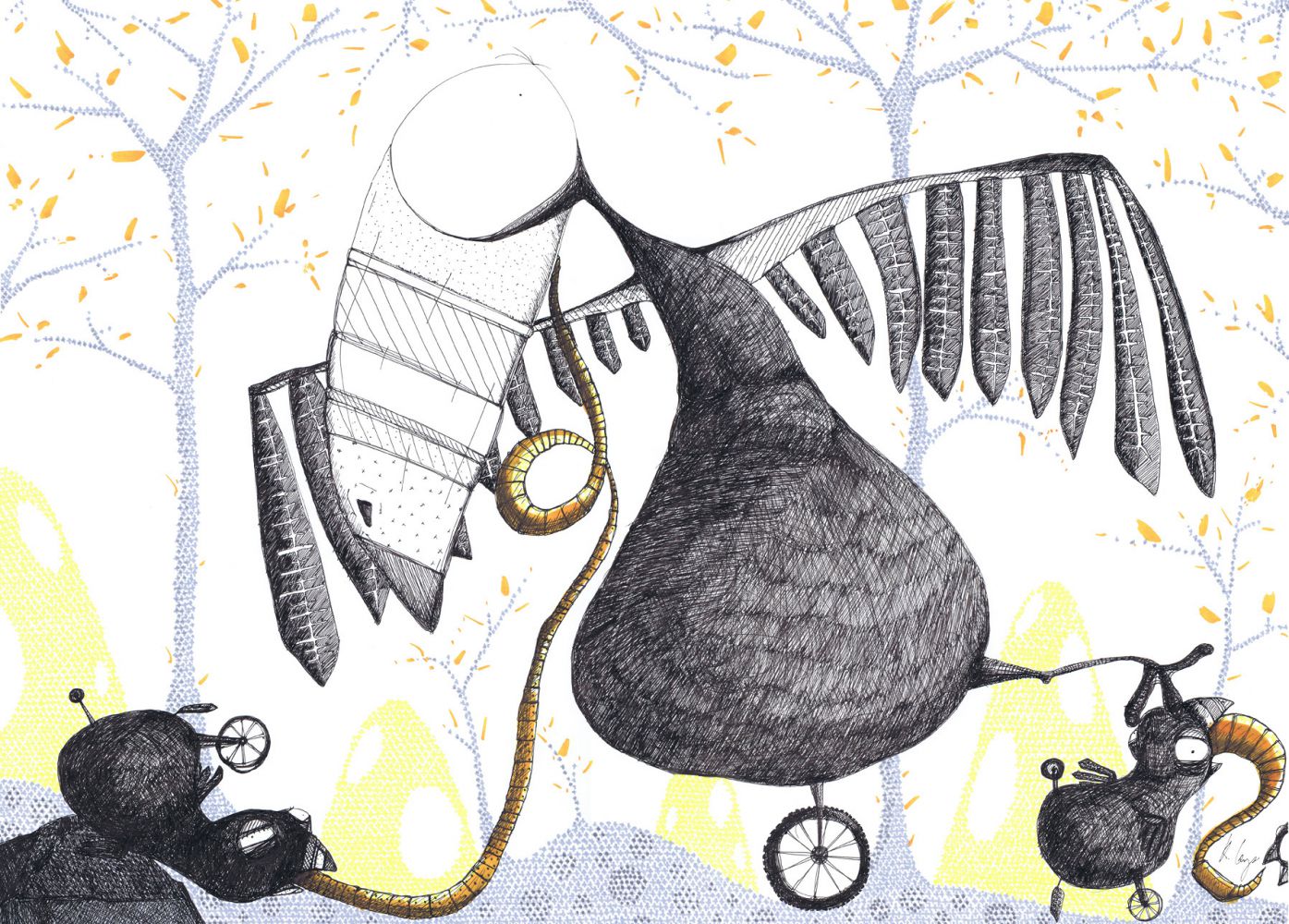 Fugl på hjul (64 x 45 cm)